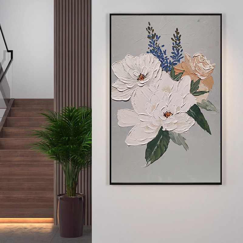 Handgeschilderd Modern Textured Canvas Olieverf van Witte Bloem voor Huis Decoratie 100% Handgemaakt en GEEN Frame 1