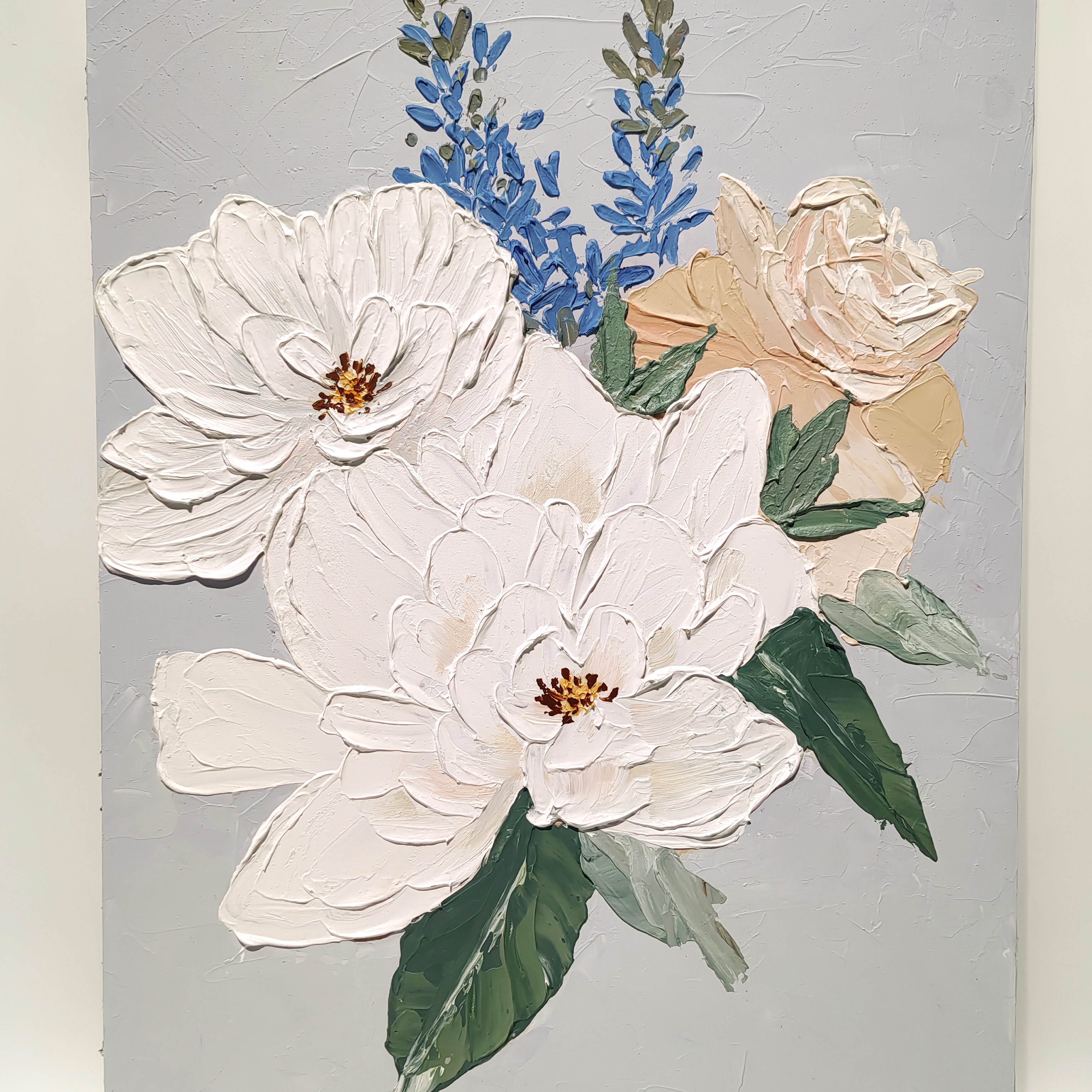 Handgeschilderd Modern Textured Canvas Olieverf van Witte Bloem voor Huis Decoratie 100% Handgemaakt en GEEN Frame 6