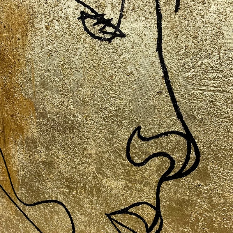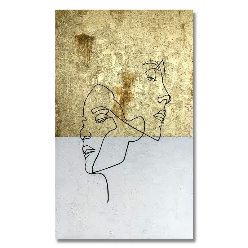 Abstract Ontwerp Home Decor Goudfolie Handgeschilderde Lijntextuur Figuur Olieverf Canvas Wandkunst Decoratie